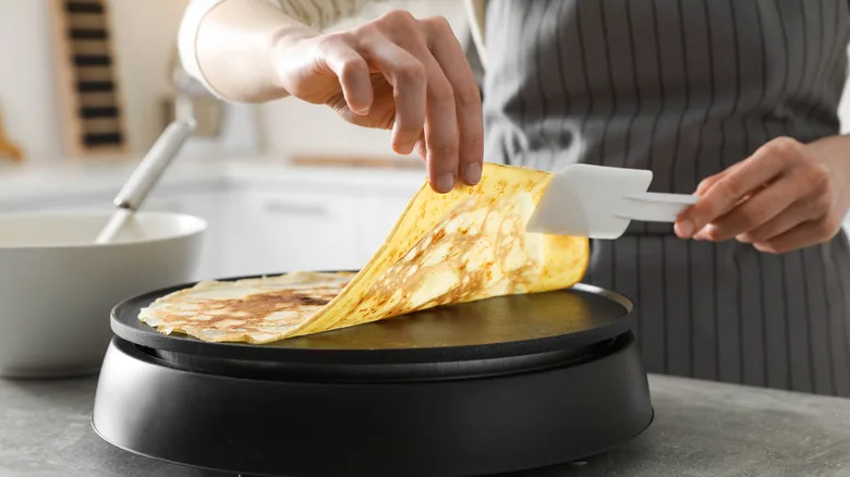 • A Spatula: A long, thin spatula (wood or plastic) is designed to get under the delicate crepe without tearing it.